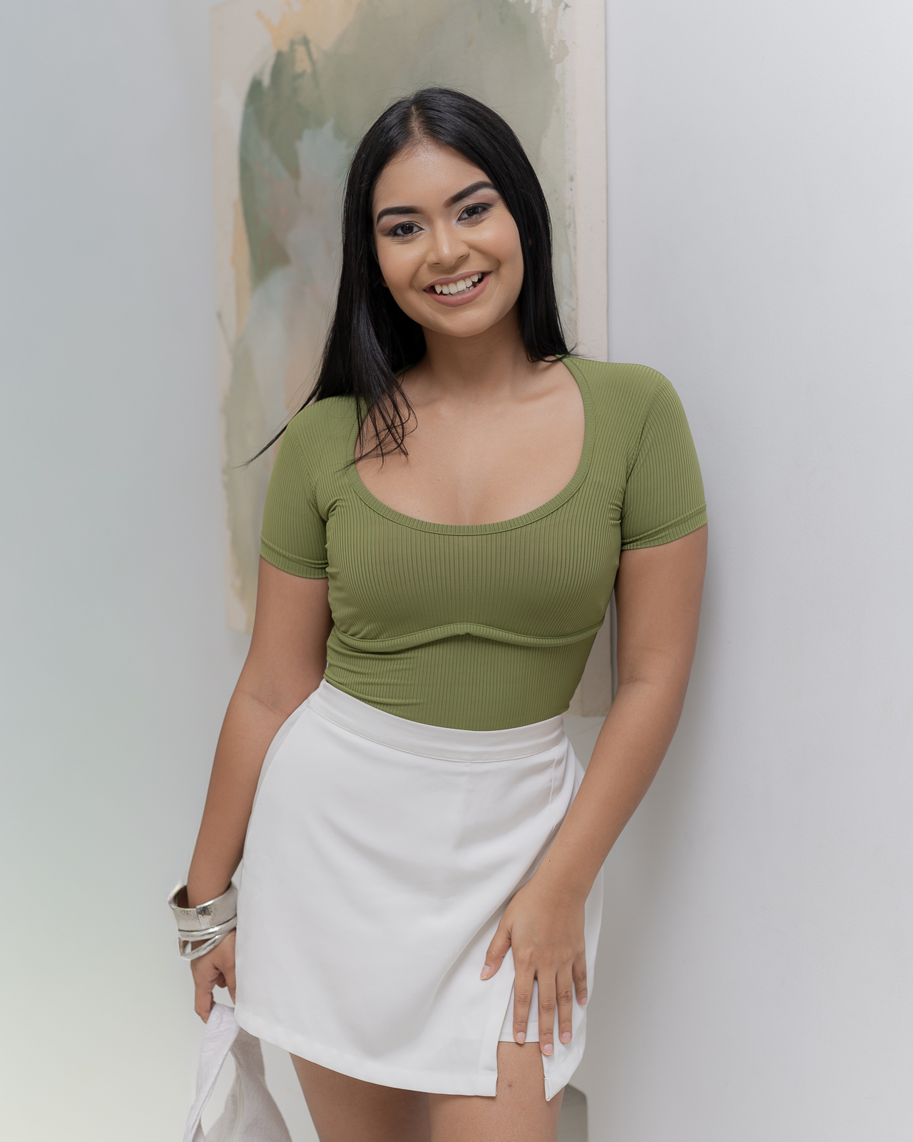 ALORA Bust Details Top – Matcha Green