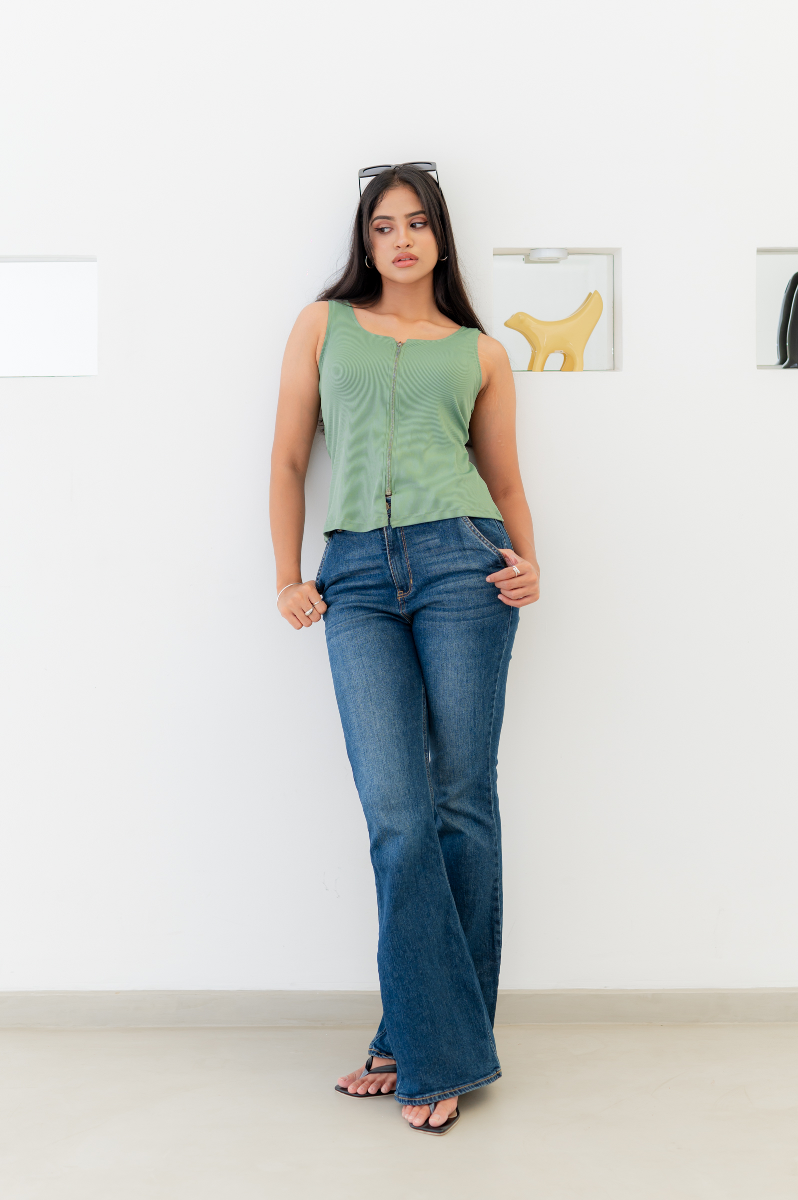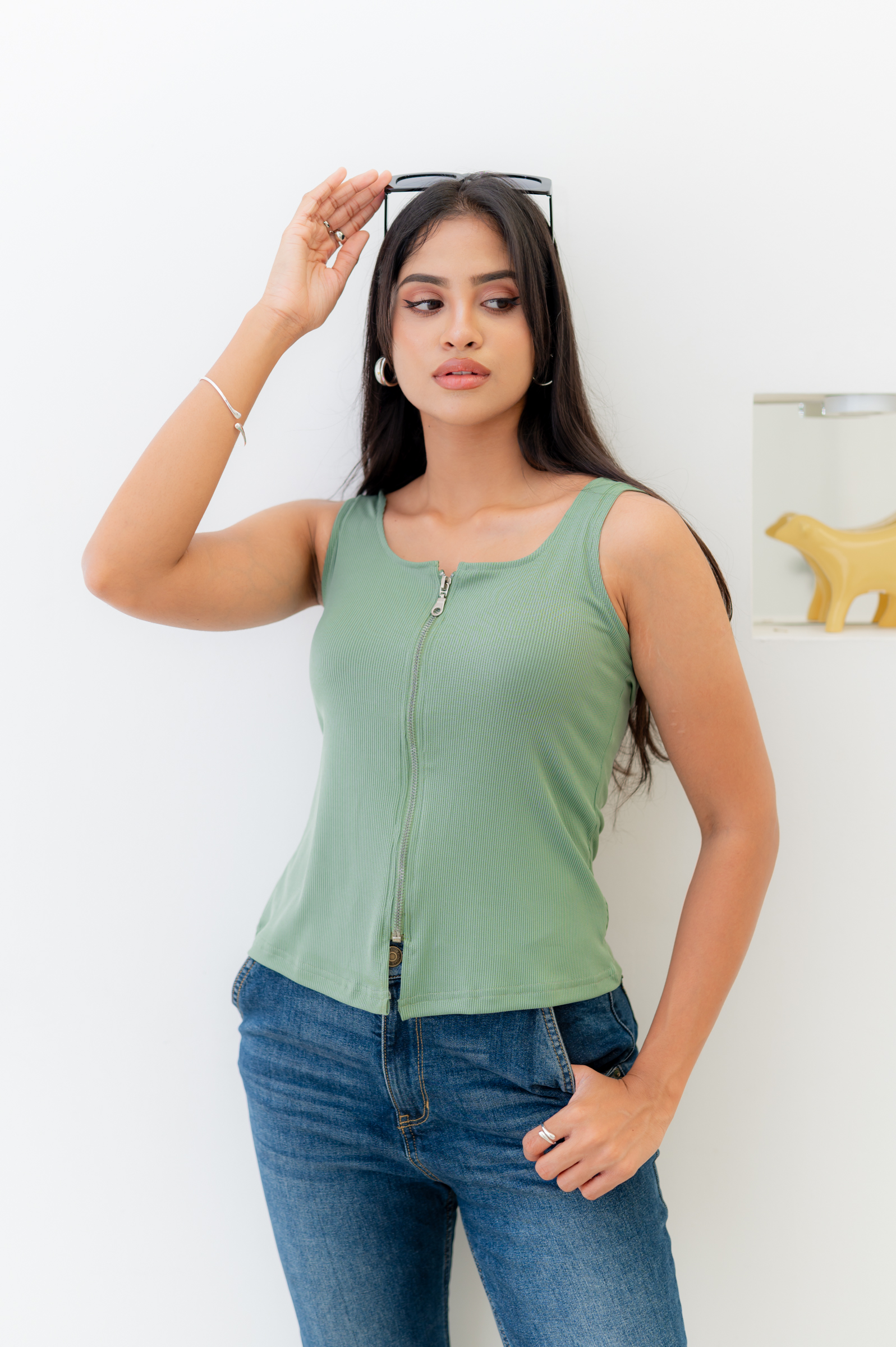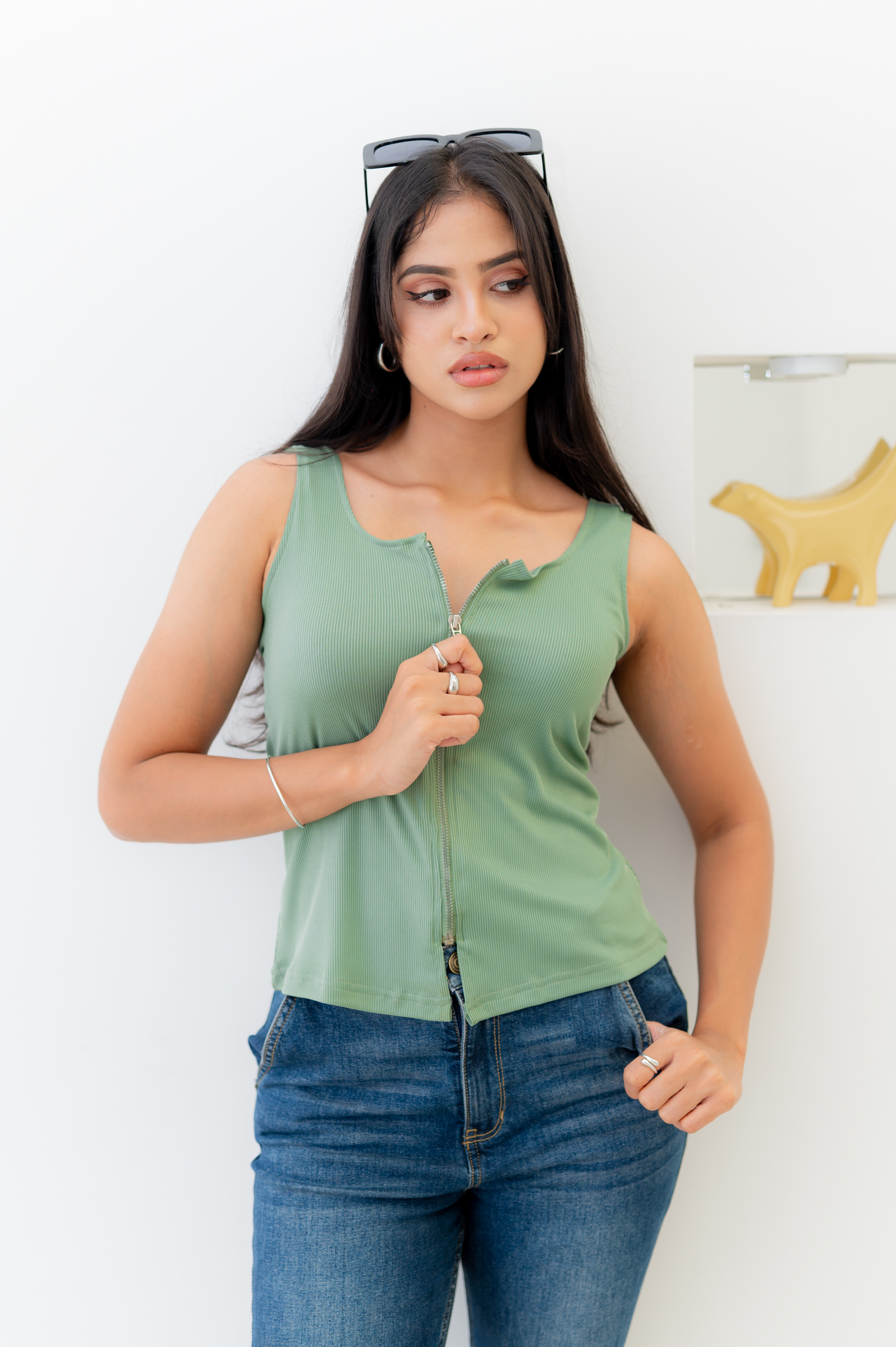 NOIRE ZIP-UP TOP – JADE GREEN