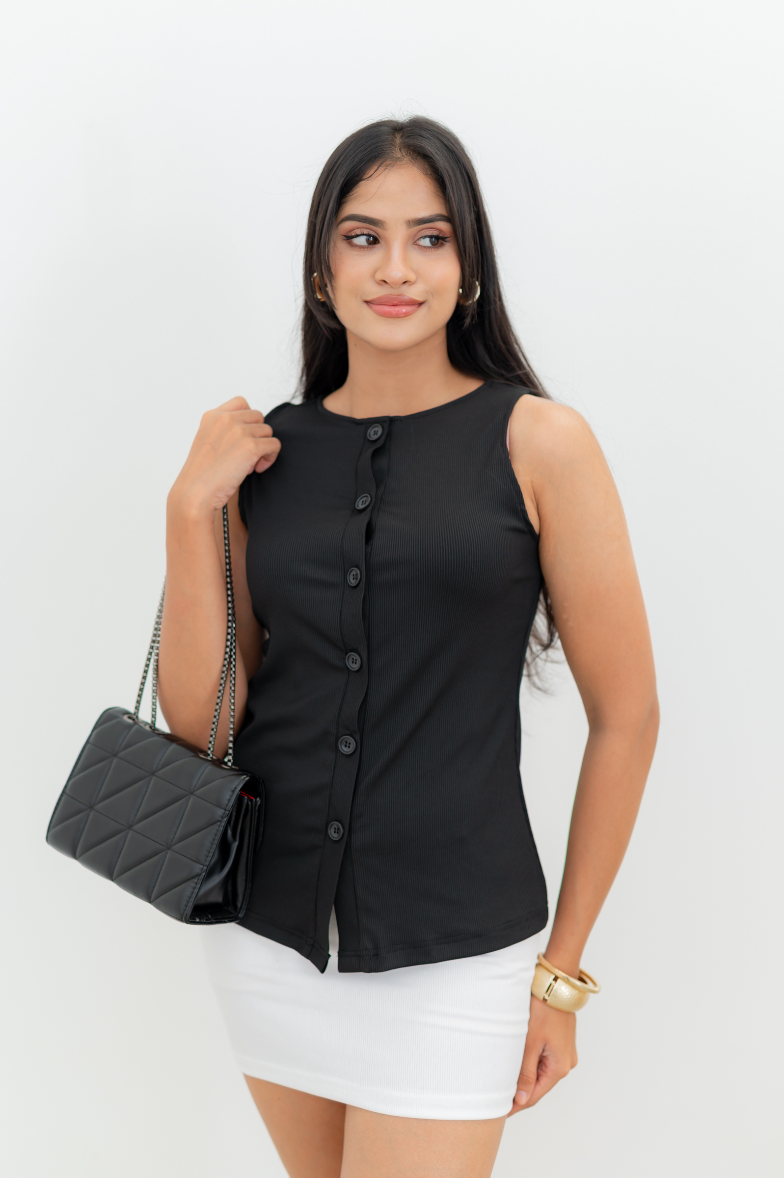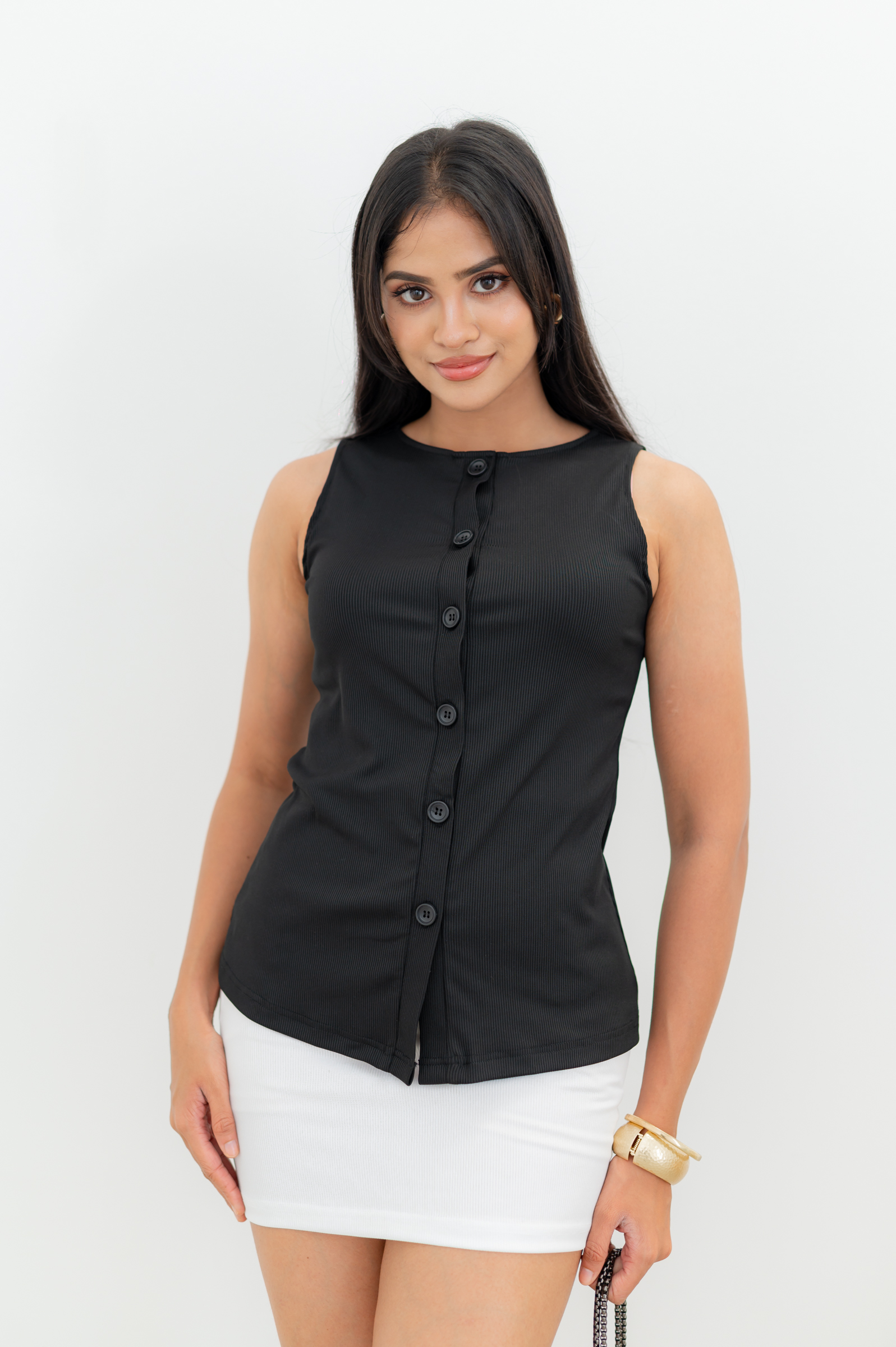 NUVERA BUTTON DOWN TOP – BLACK